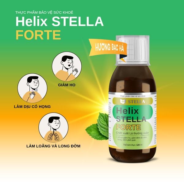 Bộ đôi sản phẩm Helix STELLA và Helix STELLA Forte hỗ trợ làm dịu cổ họng, giảm các triệu chứng ho, như ho khan, ho có đàm, ho do viêm họng hoặc viêm phế quản – là lựa chọn an toàn và hiệu quả cho sức khoẻ hô hấp của cả gia đình.